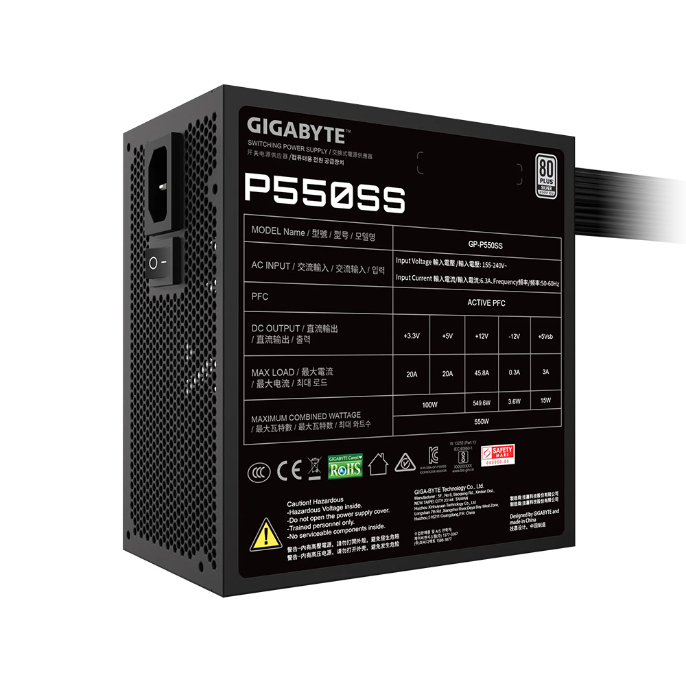 Nguồn GIGABYTE P550SS 550W là một trong những lựa chọn hàng đầu cho những ai đang tìm kiếm một bộ nguồn chất lượng cao với hiệu suất ổn định. Với công suất 550W và được thiết kế theo chuẩn ATX 12V v3.0, nguồn Gigabyte này mang lại sự kết hợp hoàn hảo giữa hiệu năng và độ tin cậy, giúp hệ thống máy tính của bạn hoạt động mượt mà trong mọi điều kiện.